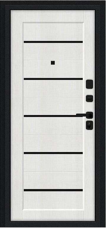 Надежная входная Дверь Браво Борн/SBlack Букле черное/Bianco Melinga премиум класса по цене 33 695 руб. Большая толщина стали защитит от проникновения в ваш дом, квартиру или коттедж. Используется очень качественная фурнитура: замки, цилиндры, ручки, защелки. Покрытие и отделка двери изготовлено под внимательным контролем производителя. Дверь имеет долгий срок службы и гарантию.