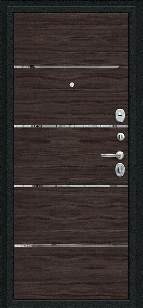 Надежная входная Дверь Браво Лайн Букле черное/Wenge Veralinga премиум класса по цене 30 165 руб. Большая толщина стали защитит от проникновения в ваш дом, квартиру или коттедж. Используется очень качественная фурнитура: замки, цилиндры, ручки, защелки. Покрытие и отделка двери изготовлено под внимательным контролем производителя. Дверь имеет долгий срок службы и гарантию.
