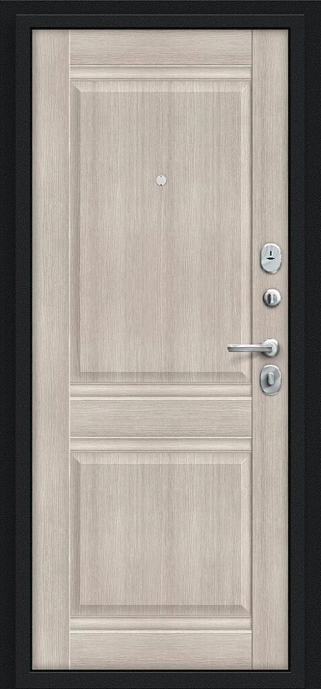 Надежная входная Дверь Браво Некст Kale Букле черное/Cappuccino Veralinga премиум класса по цене 35 945 руб. Большая толщина стали защитит от проникновения в ваш дом, квартиру или коттедж. Используется очень качественная фурнитура: замки, цилиндры, ручки, защелки. Покрытие и отделка двери изготовлено под внимательным контролем производителя. Дверь имеет долгий срок службы и гарантию.