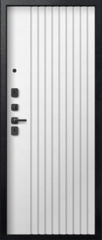 Надежная входная Дверь V-15 Черный муар + Бетон темный - Софт ясень белый премиум класса по цене 43 895 руб. Большая толщина стали защитит от проникновения в ваш дом, квартиру или коттедж. Используется очень качественная фурнитура: замки, цилиндры, ручки, защелки. Покрытие и отделка двери изготовлено под внимательным контролем производителя. Дверь имеет долгий срок службы и гарантию.